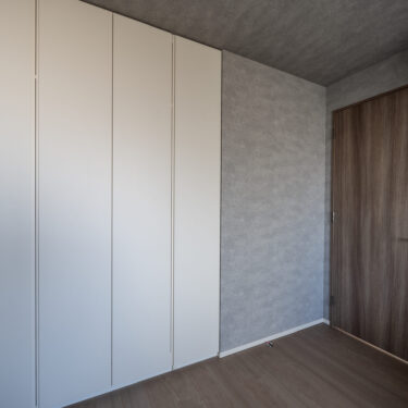 寝室には家族それぞれが選んだアクセントクロスとこだわりのインテリアが調和した空間に。