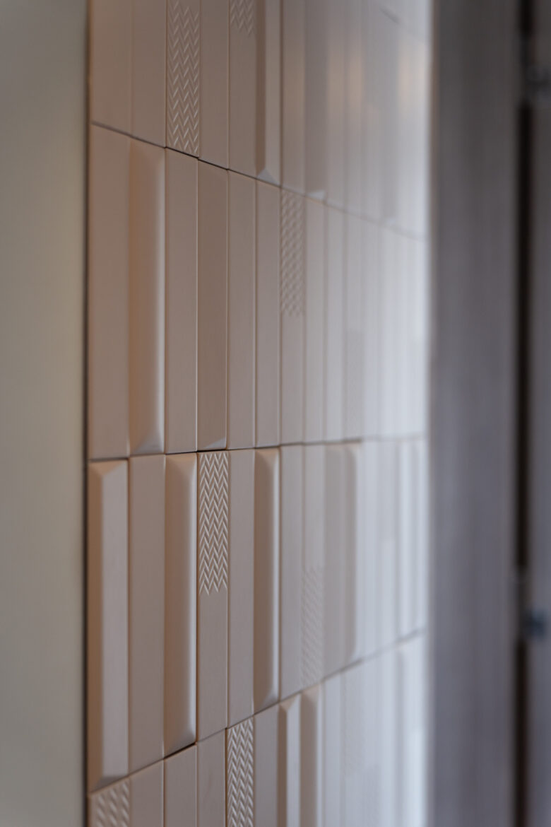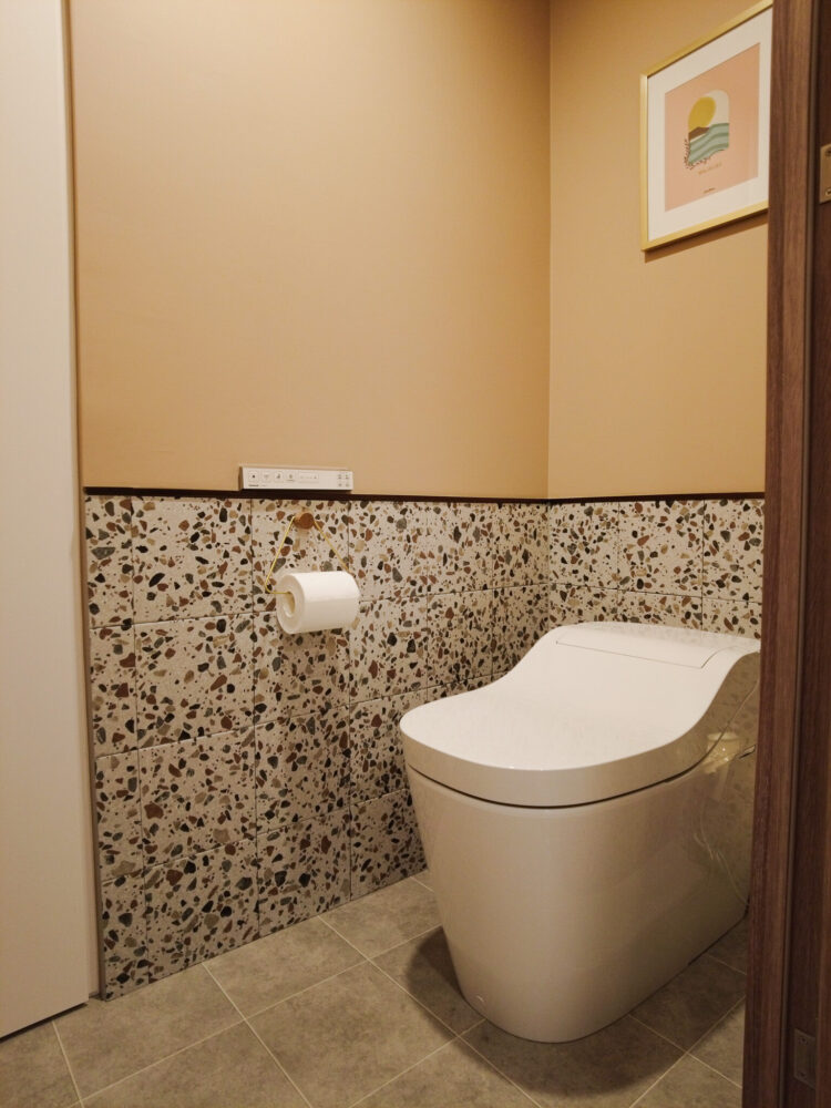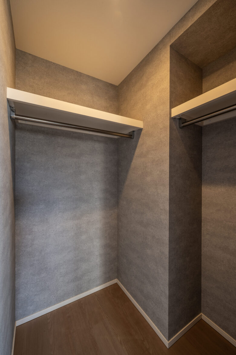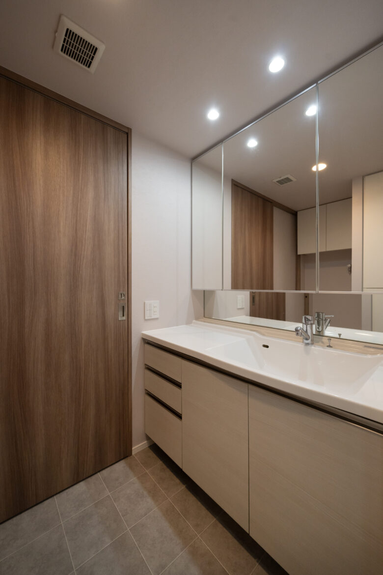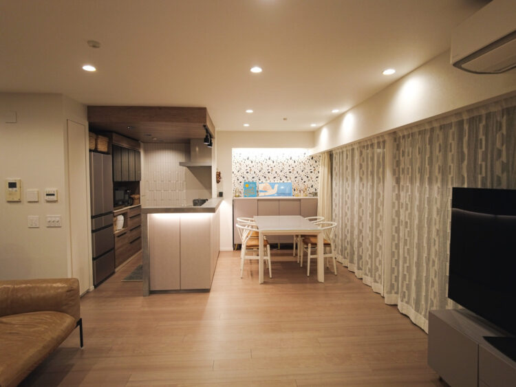 間接照明を取り入れた腰壁や、こだわりの壁紙がアクセントとなり、上品な空間に仕上がりました。