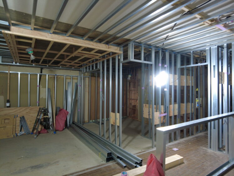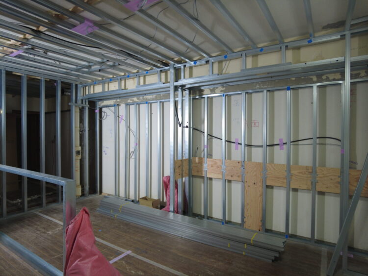 今回のリノベーションではダウンライトを埋め込むので、壁や天井に下地を組んで、配線を通していきます。