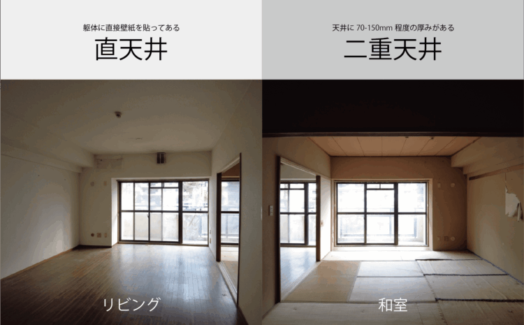 マンションの二重天井と直天井
