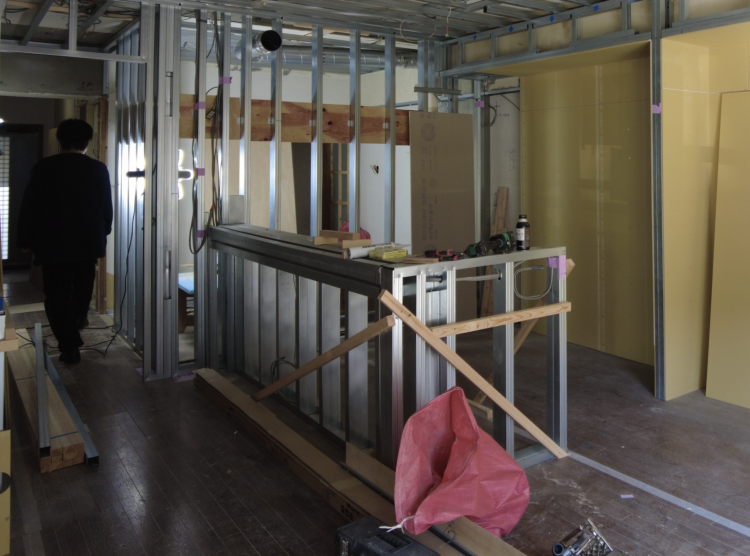 下地を組んで間仕切りを作る