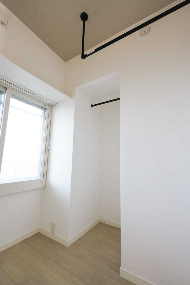 お手持ちの洋服量や収納したいアイテムをヒアリングし、動線の良さと寝室のスペースもしっかり確保した収納スペースを設計。