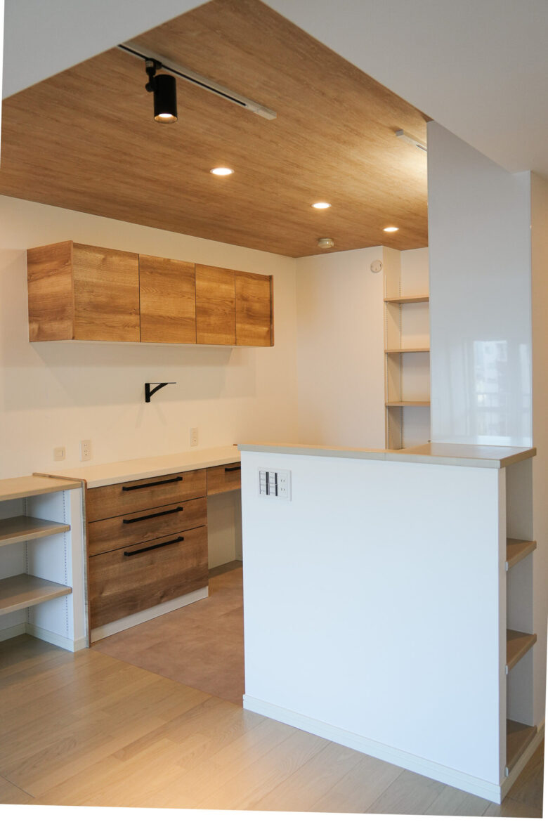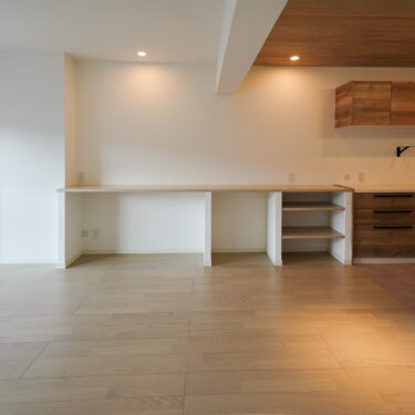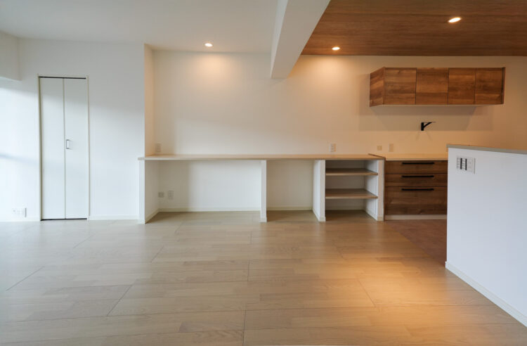 壁付けの作業カウンターをワイドに造作しました。
