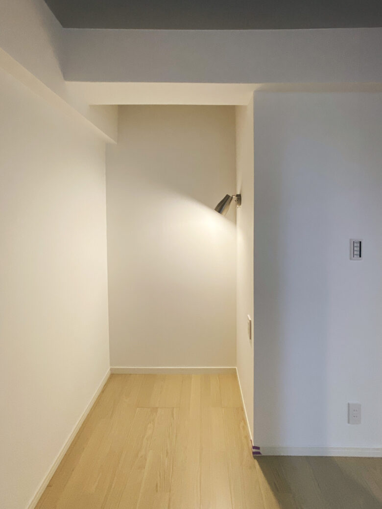 枕元には手元用のブラケットライトを設置し、読書や就寝前の時間を快適にするプチホテルのような空間ができました。